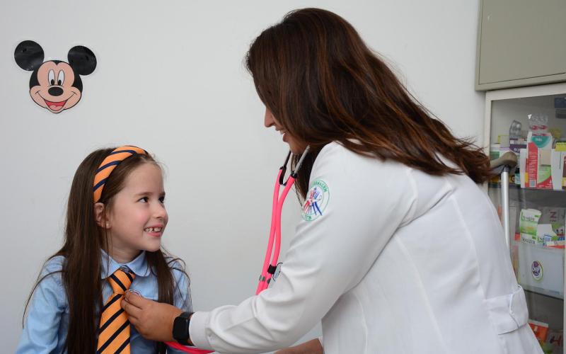 Possuímos uma Enfermaria com maca, um armário trancado com remédios e demais suprimentos médicos, além de uma enfermeira durante todo o período das aulas.